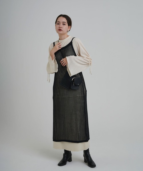 前後で着用できるメッシュロングキャミが登場。合わせるアイテムによってスタイリングの幅が広がる1着です。p o i n t・清涼感のある素材を使用・透け感のあるメッシュ編みを使用したロングキャミ・前後2wayで着用可能material【お取り扱い上の御注意】<お届け時のシワにつきまして>ページで着用している商品は撮影前に全てプレスをかけております。その為お送りする商品は畳みジワや細かいシワがついている場合がございます。ご了承下さいませ。<色移り・色落ちについてのご注意点>この商品は摩擦(特に湿った状態での摩擦)や汗や雨などでぬれた時は他の衣料や下着色が移る事がありますので、十分ご注意ください。<お取り扱いご注意点>・個々により多少異なります。・この製品は強度な摩擦によりピリング(毛玉)が生じますのでお取り扱いには御注意下さい。・雨や汗で濡れた時は他の衣類等に(特に白物)色移りする場合がありますので色製品には充分御注意下さい。・染料や加工を加えた際の臭いが製品に付着している場合がございます。・臭いが気になる場合には、風通しの良い日陰の場所に干して頂けましたら幸いです。<お洗濯について>・ネット使用・蛍光増白剤使用禁止・洗浄後は形を整えて乾燥・あて布使用・着用中の摩擦や洗浄等により毛羽立ちやピリング(毛玉)が発生することがあります。毛羽立ちやピリングが発生した場合は、ブラシ、毛玉取り器、ハサミ等を状況に合わせて使い分け早めに丁寧に取り除いて下さい。着用の際はバッグやその他のかたいもの等との摩擦にご注意下さい。風合いを損なわないためにも連続着用はおさけ下さい。・濃色は湿摩擦により色が移る場合があります。雨や汗等の湿った状態での摩擦や他の衣類との組み合わせ及びバッグ等の持ち物にもご注意下さい。・自重伸びや外観変化を防ぐためハンガー等に吊り下げての保管はさけ、軽く折りたたんだ状態で圧力が加わらないように保管して下さい。