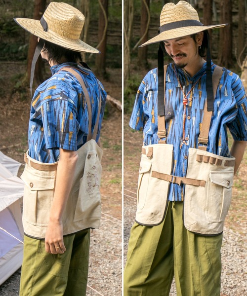 \ 旅にキャンプにアウトドアに!様々なシーンで大活躍! / ベストとしてもバックとしても使える究極の2WAYアイテム! アフリカ・サハラ砂漠の遊牧民、トゥアレグ族の文様からインスパイアされた刺繍入り。 ポケットやループ付きの多機能で、使えば使うほど愛着が沸きます。 ループにペグを引っ掛けるもよし、後ろの大きなポケットに持ちきれない荷物を入れるもよし◎ その時の状況・気分で幅広く使い分けが可能。 アクティブなシーンを思い切り楽しめるユニークなデザインです。自分流に楽しもう。 <How to Change バッグ⇔ベスト> 1. バッグ側面のジッパーを全部開く。 2. ハンドルを広げて肩に背負う。 3. バンドを留めてベストとして完成! ※こちらの商品は1点1点職人による手作りとなります。その為、形や色合い・模様など若干異なる場合がございます。あらかじめご了承ください。 ※屋外での撮影画像は、光の当たり具合で色味・カラーが違って見える場合がございます。商品のカラーは、スタジオ撮影の画像をご参照ください。 Amina Collection Co.,LTD.