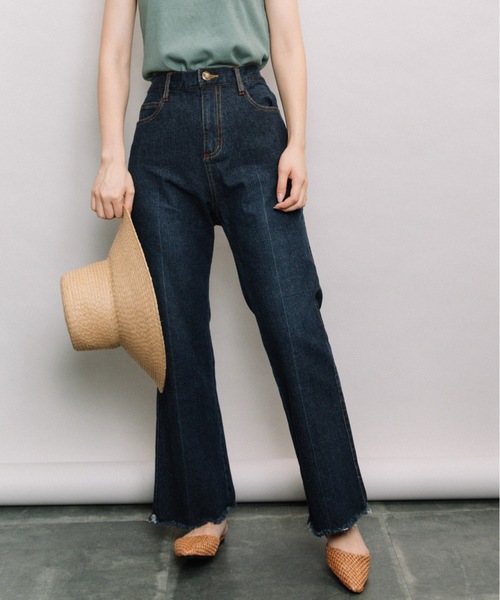 【refined works/リファインドワークス】センターシームのフレアーデニムパンツやみつきになる穿き心地。ニュートレンドのフレアーシルエット。リファインドからヴィンテージライクなデニムで登場穿くだけで叶う、ハイウエスト・センターシームの美シルエット・ヴィンテージライクな裾は切りっぱなしデザインバックはゴム仕様もノンストレスで嬉しいポイント。程よく体にフィットするシルエット、こだわりのヒップラインで美尻に脚の動きにしっかりフィットして着心地抜群です。ぴったりしたがボトムが苦手な方にもおススメです。シンプルなカットソーやTシャツ、ニットとのコーデからワンピース合わせでレイヤードコーデもOKオンオフ問わず幅広いシーンに使えるヘビロテ間違いなしの一着です。オフィスコーデ・通勤コーデからお出掛けコーデ・リゾートコーデにもおすすめ足元はサンダル、スニーカー、パンプスとなんでもOK----------------透け感:なし生地の厚さ:普通裏地:なし伸縮性:あり----------------【お買い物をよりお楽しみいただく為に♪】▼商品のお気に入り登録をおすすめします♡をクリック!完売カラーの再入荷や、ラスト1点の通知、セールの際の通知を受ける事ができます。ブランドのお気に入り登録もご一緒にお願い致します。 大人カジュアル / ベーシック / 着回し / サスティナブルrefined works -ブランドコンセプト-・活動的に暮らせる服・心地よくリラックスできるシルエット・天然素材を中心とした肌に優しい着心地良い素材・四季の移り変わりの中にワクワクするグラフィック・ノンエイジで毎日着たくなるような洋服【INFORMATION 】▼お気に入り登録▼『♡』マークを押してお気に入り登録をすると、割引クーポンの発行/セール開催の通知/タイムセール通知/人気商品の再入荷通知など、miniyu取扱いブランドのお得な情報を受け取ることができます。 気になった商品はどんどん『♡』マークを押して、登録してくださいね♪