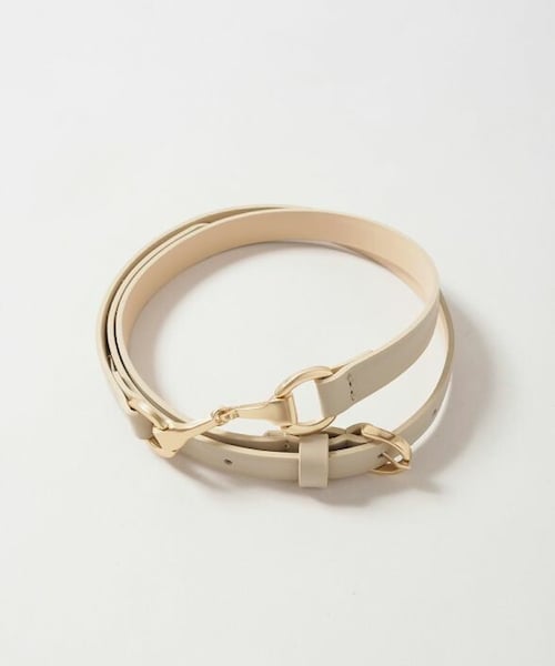 フロントホックが目を惹くレザーベルト。 細めのデザインで女性らしくさり気ないアクセントになります。 デニムに合わせたり、ロングシャツやワンピースにブラウジングとして使うのも◎ ベーシックなベルトとはまた違った雰囲気でコーディネートが楽しめるアイテムです。