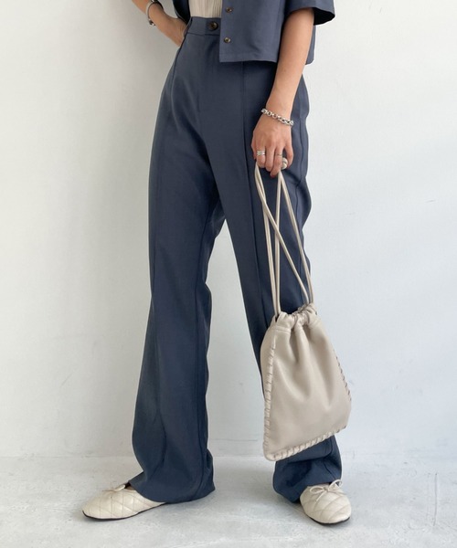 ■セットアップでこなれ感を■ センタープレスが入ったパンツはスッキリと縦見え効果◎ ひざ下からフレアになっているのでダボっとし過ぎず キレイ目な雰囲気で着て頂くことが出来ます。 セットアップでこなれ感を出した着こなしもおススメ。 【point】 ・センタープレスでスッキリと縦長効果 ・フレアシルエットでキレイ見え ・ハイウエストも加わり足長効果も抜群 【detail】 ハイウエストのサイズ感でしっかりとウエストで履いて頂くと 足長効果抜群のパンツです。 ベルトループも付いているのでウエストの調節可能です。 センタープレスとフレアシルエットでどこをとっても足がスッキリときれいに見えます。 【fabric】 ポリエステルのさらっとした質感でさらっとした履き心地。 シワにもなりにくいのでお手入れも楽ちんです。 ーーーーーーーーーーーーーーー 透け感:なし 裏地:なし 伸縮性:あり 光沢感:なし 生地厚さ:普通 洗濯方法:洗濯可 ※詳しいお手入れ方法は商品についているタグをご覧ください ーーーーーーーーーーーーーーー 【coordinate】 セットアップにもなるパンツなのでセットアップでの着こなしもおススメ。 もちろん単品でTシャツやシャツと合わせるのもおすすめ。 冬場はセーターなどゆったりとしたシルエットのものと合わせるのも◎ ・BLACK/MOCHAはチェック ・BLUE/BROWNは無地 ※ご利用のモニター環境により、実際の色味と多少異なる場合がございます。 … information … 欲しいitemをお気に入り登録(♡マークをclick) ・お買いのがし対策…完売itemの再入荷やラスト1点の情報をお知らせ ・欲しいitemをお得にget…price downになったらいち早くお知らせ ・スムーズ検索…ZOZOのお気に入りアイテムページで簡単checkできるから、再検索不要♪
