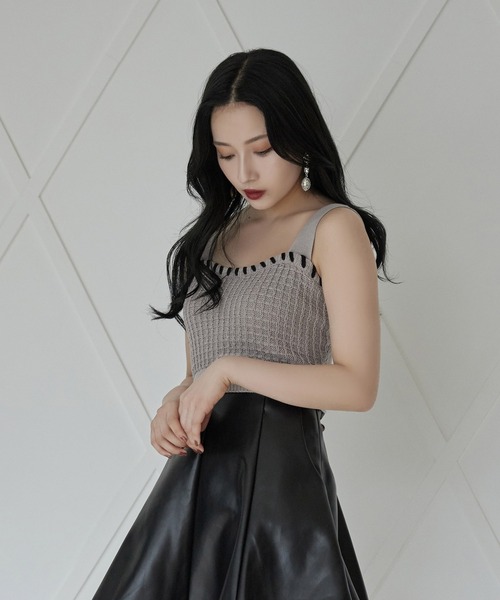 編み込みコードがかわいいニットビスチェ。コードニットカーディガン(AG213KT0802)と 合わせて着るのがおすすめ。