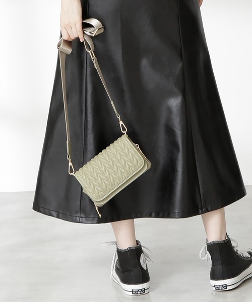 N.で人気のミニショルダーバッグ。今季は長さ調節ができるワイドベルトと表面感のあるキルティングのフラップデザインで大人っぽく仕上げています。小さいサイズ感ながら、ミニ財布やリップなどちょっとした小物類が入れられます。どんなスタイリングにも馴じみよく、デイリー、旅行先にもお使いいただけます。