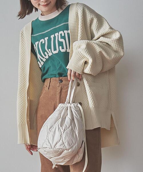 ~2021 FALL/WINTER COLLECTION~ キルティングによるクッション性が魅力 同シリーズでエコバッグ(品番:76816180107)ビッグトートバッグ(品番:76816180109)もございます。 ■デザイン/素材 30デニールの薄いナイロンに中綿を入れキルティングにしたトートバッグ。 やや光沢の有る素材で大人の方にもおすすめできる一品です。 ■スタイリング 持ち方が2WAY仕様になっておりハンドルで持つ事もコードで持つ事もできます。 温かみを感じながらもマチがたっぷりあり荷物がたくさん収納できるのでデイリーユースに最適です。 ................................ 内ポケット無し ................................ 【注意点】 ※撮影商品はサンプルの為、実際の仕様と異なる場合がございます。 ※画像の商品は光の照射や角度、お使いのモニター環境により、実物と色味が異なる場合がございます。スタジオ物撮りの画像が実物の色味に一番近くなっております。 ※予約商品の場合、実店舗への入荷は「お届け予定」とほぼ同時期となりますが、実店舗への入荷が前後する場合もございます。 品名:SC キルト キンチャク TOTE 品番:7681-618-0108