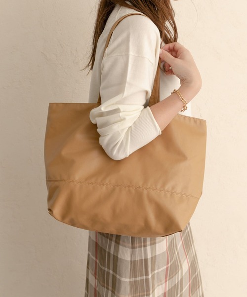 いつも清潔に使いたい、を叶える洗える素材で仕上げたトート ご自宅で洗えるフェイクレザーを使用したトートバッグが登場。 軽量でA4サイズが収納可能なので、通勤や通学にもぴったり。 中にはファスナー付きのポケットと、取り外し可能なカラーポーチ付きで ポーチの中に畳んでバッグを収納可能なので、持ち運びにも便利なアイテムです! ※A4サイズ収納可能 ※色移りの原因になりますので強い摩擦はお避けください。 ※カビや変色の原因になりますので、通気性の良いところで保管してください。 ※その他お取り扱いに関しましては、商品に付属のアテンションタグをご覧ください。 総重量 : 約230g [ポーチ] one : 縦14.5cm / 横20cm ※商品画像は、光の当たり具合やパソコンなどの閲覧環境により、実際の色味と異なって見える場合がございます。予めご了承ください。 ※商品の色味の目安は、商品単体の画像をご参照ください。