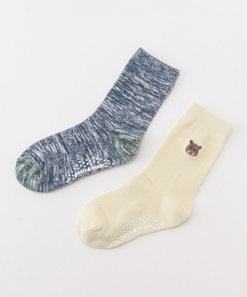 スタイリングに欠かせないデザイン違いのソックス2Pセットです。 アニマルのワンポイント刺しゅう&味わい深いスラブ糸とそれぞれ異なるルックス♪ 脱げにくくするサポートゴムや足裏のすべり止めなど、お子さまが元気いっぱい動ける工夫も。内側にはお名前を記入できるスペースを確保しました。