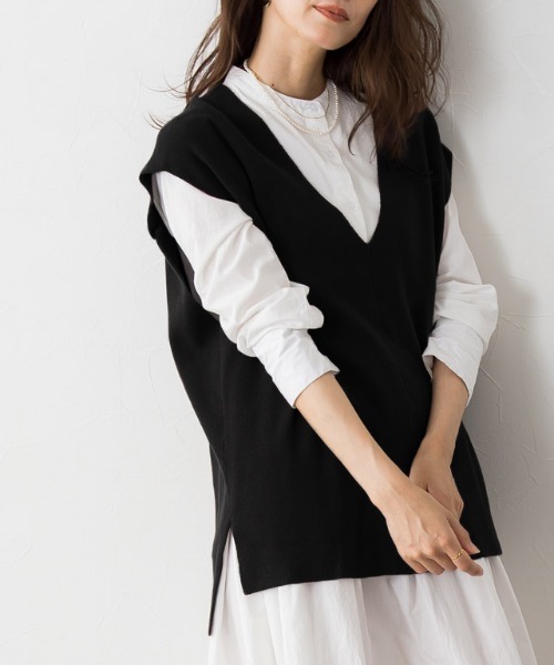 上品なレイヤードスタイルに仕上げる“ミラノリブVネックニットベスト” “上品な風合いのニット素材” "もっちりとした柔らかな風合いのニット。レーヨン混の生地は弾力性のある滑らかな肌触りなので、着心地抜群です。ミラノリブ編みにすることで上品な印象に仕上げました。 透け感(淡色):若干あり 透け感(濃色):なし 伸縮性:あり 裏地:なし ポケット:なし 生地の特性上少し毛羽たちが生じます。 ネックはインナーを合わせやすいよう、すっきりとしたVネックデザインに。ゆとりのあるサイズとフレンチスリーブでこなれ感をプラスしました。インナー次第でコーディネートの印象が変わる、着回しやすいアイテムです。 ※商品画像は着用イメージです。光や角度により、実物と色味が異なる場合がございます。 また表示のサイズ感も実物とは若干異なる場合もございますので、予めご了承ください。 【ブランド】 marvelous by Pierrot(マーベラスバイピエロ) #大人可愛い #大人カジュアル #ニットベスト #ベスト #レイヤード #トレンド #秋冬 #秋 #ニット 【お買い物を楽しむための方法】 **商品のお気に入り登録** カートボタン横の♡をクリック! 気になるアイテムが完売しても再入荷のお知らせ通知や、在庫ラスト1点の通知、セールの通知が届きます。 **ブランドのお気に入り登録** ブランドトップページの「♡お気に入りブランドに追加」をクリック! 新商品や再入荷など、クーポン配布などのお得な情報を受け取ることができます。 洗濯:手洗い可 <ご注意> ・生地のカッティングにより画像と異なる場合がございます。同商品、同色におきましても色(染料)やロットによって伸縮性・伸び率、裁断上ずれなどが生じてしまう現象があります。 また、プリント加工の際に、インク飛びが目立ってしまう場合がございますが、手法上致し方ない現象となりますので、なにとぞご了承くださいませ。 ・同生産時期でも、色、サイズ、デザイン、素材の質感が多少異なる場合がございます。サイズ詳細などの測り方はスタッフ間で統一、徹底はしておりますが、若干の誤差(約2~3cm誤差)がある場合がございます。 また、ニット製品は生産の過程上「生地を織る際の糸の継ぎ目」繊維の「混紡」、プレス加工、製品洗い加工によって形やサイズ(5cm前後)に誤差が生じる場合がございますが品質上の問題はございません。