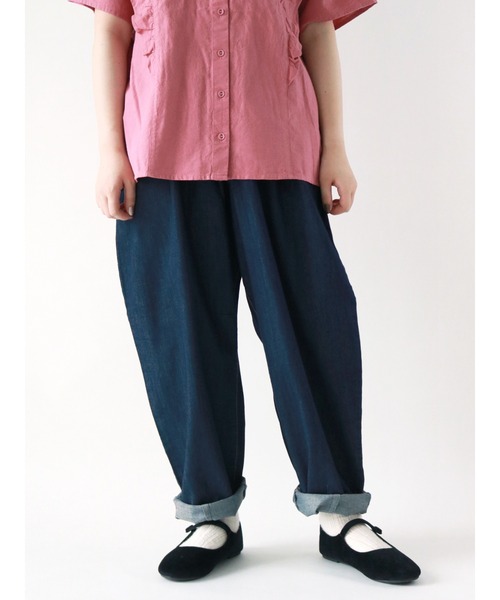 ふっくらとしたゆとりのあるシルエットで穿き心地の良いベーグルパンツ。 カジュアルな印象のデニム素材でデイリーユースもしやすいです。ウエストゴム仕様で心地よくフィットし、安心感があります◎ シンプルなデザインで着回し力も高く、ワードローブの定番アイテムとしても重宝しそう。