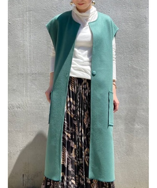 厚手のフェルトのような、目のつまった高級感のあるウールのハオリ。 裏地はなく、1枚仕立てで軽いので、ベストやワンピース感覚で着て頂けます。 深みのあるグリーンとネイビーの2色展開です。 切りっぱなし風のパッチポケットがアクセントに。 【スタッフコメント】 DAZAI 青山 166cm 【outer】着用サイズ:F 今期注目のベスト。 シャツやタートルなどの上に重ねて、秋口から色々な合わせが楽しめる羽織です。 ウール混でしっかり暖かさもあり、目の詰まった生地なのでくたっとせず上品なハリがあります。 お袖は少し肩にかかる長さがあり、着丈は私の身長で膝丈くらいです。 サイドに深めのスリットが入るのですっきり合わせられますよ。 洗濯 :ドライクリーニング 伸縮性:なし 透け感:なし 裏地 :なし 光沢感:なし FUKASAWA 東急百貨店吉祥寺 153cm 【coat】着用サイズ:F 一枚仕立てで軽いので、ベストやワンピース感覚で着て頂けます。 首元はノーカラーなので、ハイネックのトップスの上に羽織るのもおすすめ。 私の身長で、膝がしっかり隠れる着丈です。 透け感:なし 裏地 :なし 【商品をお気に入り登録しておきましょう!】 気になるアイテムは、♡マークをクリックしておくことで、スムーズにお買い物が楽しめます。 ・ラスト一点のお知らせ ・再入荷のお知らせ ・予約商品が店頭に入る際にお知らせ ・SALEのご案内 ※写真はサンプルを撮影しています。実際の商品は仕様が異なる場合がございますので、ご了承下さいませ。 outer 2021coat