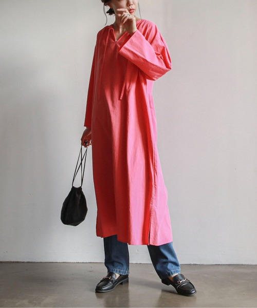 -2021 Autumn&Winter- 【大人の抜け感ワンピース】 一切締め付けのないリラックスワンピース。 コットン100%で通気性も良くお手入れも楽チン。 お家でのリラックスタイムにも最適です。 首元の紐はあえて結ばず垂らして、ラフなこなれ感を演出するのがオススメ。 一枚でお召し頂くのはもちろん、肌寒い時期にはハイネックのインナー合わせやパンツとのレイヤードスタイル など様々な着こなしをお楽しみ頂ける一着です。 ----------------------------- 透け感:なし(アイボリーはあり) 伸縮性:なし 裏地:なし ポケット:なし お手入れ方法:手洗い可能 ------------------------------ ※照明や天候、閲覧環境によって実際の色味と異なって見える場合がございます。予めご了承ください。 … information … 欲しいitemをお気に入り登録(♡マークをclick) ・お買いのがし対策…完売itemの再入荷やラスト1点の情報をお知らせ ・欲しいitemをお得にget…pricedownになったらいち早くお知らせ ・スムーズ検索…ZOZOのお気に入りアイテムページで簡単checkできるから、再検索不要♪ -feepur- 2021.03.07 openㅤㅤㅤㅤㅤㅤㅤㅤㅤㅤㅤㅤㅤ デイリーに着る“new basic”をpetit priceで提案するブランド