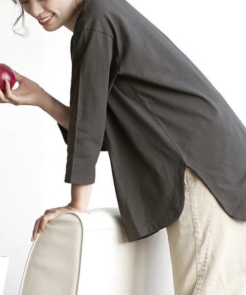 アプリからご覧の方は汗しみない実験動画をcheck!画像一覧に汗が表に染みない様子を撮影した動画を掲載しています!ぜひお買い物の参考にご覧ください^^【汗染みないシリーズ】シンプルなものこそ、機能性に拘りを。日常に寄り添う、高機能なベーシックウェア。汗染み防止加工と、UVカット機能がついたベーシックなデザインカットソー。汗もいわば「水分」。この素材は生地の表面に撥水加工を施すことで、汗をかいたときに表から見えないような構造になっているんです。また、生地の裏面には吸水加工が施されているので、汗をかいたら「すぐに吸い取ってすぐに乾かす」そして「表にそれを見せない」そんな待望の機能素材!※この効果は、洗濯を繰り返すことにより次第に薄くなります。一枚は持っていたい、ベーシックな形重ね着にも使い勝手のいいシンプルなデザインで、ヘビロテ間違いなしのマストアイテム!腕を捲らなくてもすっきりと着こなせるちょうどいい丈感の七分袖と、気になる部分を隠せる後ろ下がりのラウンドカットで女性らしく。さらにはサイドスリットが施され、一枚でラフに着てもサマになるシルエットです。洗濯:洗濯機使用可