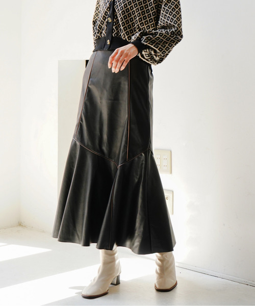 マーメードシルエットが可愛いスカート♪切り替えでメリハリを付けました。大人カジュアルコーデにぴったり!【素材】レザータッチ素材を使用し目を引く仕上がりです。コーデの主役級アイテム。[クリーニング]手洗い可,ウェットクリーニング(W)★Instagramにて近日発売予定のアイテムやルックをご紹介しております。 @vence_sharestyle★《お気に入り登録》でお得な情報がいっぱい★・「商品のお気に入り登録」で再入荷通知や、ラスト1点の通知、セール通知も受け取ることができます。・「ブランドのお気に入り登録」で新商品や再入荷など、お得な情報を受け取ることができます!