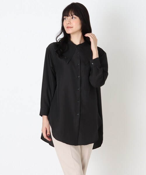 【デザイン】着回しの幅が広がるつけ襟とバンドカラーチュニックの2点セットです。チュニックブラウスは、前釦仕様になっているので、羽織としてもお使い頂け、上のボタンだけ外して抜け襟にした着こなしもおすすめです。トレンドのつけ襟がセットになっているので合わせるだけでトレンド感満載スタイルに。簡単な取り外しで表情を変えて楽しめるのも嬉しいポイントです。【生地感】サラッとした落ち感と適度な表情感をそなえたジョーゼット生地。※こちらのアイテムはやや透け感があるため、インナーの着用をおすすめします。【サイズ】大きいサイズ(LL)の展開あり。※04(LL)サイズはWEB限定サイズです。モデル情報:身長168cm B75 W60 H87 着用サイズ:02(M)店舗へのお問い合わせ商品番号:741-53014●製品寸法:02(M):着丈81cm B102cm 袖丈49cm 肩幅46cm W116cm H126cm 付属襟全長49cm 付属襟幅17.5cm03(L):着丈83cm B108cm 袖丈50cm 肩幅48cm W120cm H132cm 付属襟全長50cm 付属襟幅18cm04(LL):着丈85cm B114cm 袖丈50cm 肩幅50cm W124cm H138cm 付属襟全長51cm 付属襟幅18cm備考: