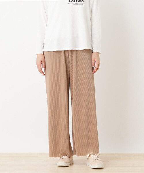 大人気プリーツカットパンツがカラーバリエーション豊富に展開。【デザイン】動く度にきれいに揺れるプリーツパンツはスタイルに取り入れるだけでこなれた印象に。ベーシックカラーに加えて絶妙なニュアンスカラーとアクセントカラーと種類豊富に取り揃えました。※ポケットなし【シルエット】程よい分量感のあるシルエットです。ウエストもゴム仕様で快適に着用して頂けます。【素材】程よい光沢と表情感のある素材を使用し、甘くなりすぎず上品な女性らしさを演出します。※裏地なし【サイズ】小さいサイズSサイズあり。※01(S)サイズはWEB限定サイズです。#CutieBlonde#Cutie#cutieblonde#cutie#キューティブロンド#キューティ#20代#30代モデル情報:身長168cm B75 W60 H87 着用サイズ:02(M)店舗へのお問い合わせ商品番号:256-63005●製品寸法:01(S):W61cm H98cm 股下66cm 前股上29cm 渡り幅32cm 裾幅31cm 着丈95cm02(M):W65cm H102cm 股下66cm 前股上29cm 渡り幅33cm 裾幅32cm 着丈95cm03(L):W69cm H106cm 股下66cm 前股上29cm 渡り幅34cm 裾幅33cm 着丈95cm備考: