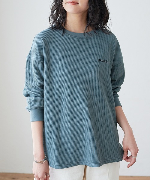 通年通して大人気!ワッフル素材のロングTシャツ 柔らかなワッフル素材で仕上げたラウンドロンT。 人気の素材のワッフルTシャツで、幅広い着こなしに活躍するアイテムです。 裾がラウンドしたシルエットで適度にゆとりを持たせたシルエット。 柔らかなワッフル素材と、上品なクルーネックで女性らしい雰囲気にもばっちり! 首回りや肩・袖にかけてのステッチ刺繍が絶妙な抜け感を演出。 スポーティ過ぎないため、大人の女性にもおすすめです。 一枚での着用はもちろんパーカー・プルオーバーなどのインナーにも◎ これからの季節はベストや薄手のジャケットと合わせるのもおススメ。合わせるアイテムを問わないシンプルベーシックな1枚。 胸元のブランドロゴ刺繍や、バイカラー(配色)ステッチもナチュラルなワンポイントに◎ 【おススメコーディネート】 1枚で着用してラウンドシルエットのスリットや、袖のリブなどこだわりが上品な大人のアイテムへと格上げします。 着丈を少し長めにとり、裾がラウンドしているデザインを採用。 パーカーやジャケットのインナーとしても使えるので、レイヤードコーディネートでオールシーズン大活躍すること間違いなし! スキニーなどの細めのボトムスを合わせてメリハリをつけるのも、ワイドパンツを合わせて大人のリラクシー感あるコーデにもおススメです。 【生地ポイント】 COTTON USA綿の裏起毛素材を使用し、 ポリエステル糸との混紡で綿独特の風合いとハリ感のあるほど良い質感に仕上げました。 ストレッチ性・柔らかさもあり、肌にも優しい1枚です。 サスティナブル(持続可能)な農法と公正な労働環境下で栽培された綿花を使用。 生産・販売・着る人たちや地球環境に優しい、これからのファッション業界の未来へと繋がっていくサスティナブルな素材です。 【色展開】 ブラック(黒、黒色) ホワイトのロゴがコーディネートのアクセントになる、モードなカラー。 ブルーグレー(青) グレーがかった、アンニュイ感漂う淡いブルーカラー。 モカ(茶色) 落ち着いた印象を与える、上品な色合い。 ベージュ 柔らかなライトベージュのカラーで、合わせる色を選ばないベーシックなカラー。 【サイズ】 M(9号相当) L(11号相当) LL(13号相当) モデル着用 Mサイズ 【KANGOL EXTRA COMFORT(カンゴール エクストラ コンフォート)】 KANGOLは帽子から始まったイギリス発祥のブランドです。 80年以上の歴史を持ち、長い歴史を通して進化を続けながら 今なお幅広い層から絶大な指示を得ています。 「スポーティー要素があるアイテムだけど、気兼ねなく様々な場面で着用できる」 定番アイコンやロゴを使いながら、大人が着たくなる、 日常に使えるアイテムにトレンド要素をプラスし 快適でデイリーユースな、トレンドカジュアルを提案します。 【お買い物をお得にもっと楽しんで頂くために】 ▼商品のお気に入り登録▼ 完売カラーの再入荷通知や、ラスト1点の通知、 プライスダウンしたセール通知も受け取ることができます。 ▼ブランドのお気に入り登録▼ 新作や再入荷等、いち早くブランドのお得な情報を受け取ることができます!