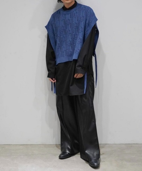 インナーのカラーやレイヤードで楽しめるよう透かし編み・丈を短めに設定。脇下を結べるよう紐を付けており、シルエットを変更可能。 トレンド感のあるアイテム。カットソーやシャツと重ね着がおすすめ。 綿とアクリルの混紡素材を使用しており、3シーズン着用できます。 カラー展開はブラックとブルー。 ※掲載画像の商品は撮影用サンプルです。実際の商品とは仕様、加工、サイズが若干異なる場合がございます。また、撮影時の光の照射や角度により色味が異なる場合もございますので、予めご了承ください。 ※着用、お取り扱いの際は、商品に付属している洗濯ネームを必ずご確認ください。 <返品・交換について> 本商品は、紙の使用量削減のため「下げ札」を付属しておりません。 返品・交換の際は、透明なビニール袋に貼られているシールタグが必要になりますので、破棄せず保管をお願いいたします。 なお、以下に該当する場合は返品・交換をお受けできませんので、商品到着後、必ず着用前に商品をご確認いただきますようお願いいたします。 ・シールタグや本体に縫い付けられているタグ、付属品の紛失、破損・汚損がある場合 ・商品を使用・洗濯した場合(水通しを含む) ・商品に破損、汚損、シワの発生、においの付着があるなど、お届け時と状態が異なる場合 【ブランド情報】 unlow(アンロー) コンプレックスだらけの人間による、コンプレックスだらけの人のための服作りを目指すブランド。 “オシャレしてlowな気分を変えていこう” そんな想いをブランド名に込めました。 【ブランドディレクター情報】 心 2019年5月よりWEARISTAに選出。低身長というコンプレックスを抱えながらも、着方や見せ方次第でファッションを楽しめる事を知り、いつしか同じ悩みを抱える人に向けて情報を発信するように。