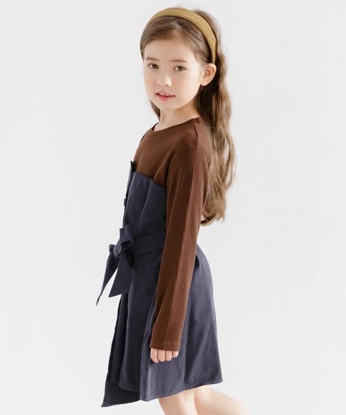 【素材】 上身頃:ポリエステル95% ポリウレタン5% 下身頃:コットン100% 大人可愛い異素材ドッキングワンピース♡ 張りのあるトレンチ素材なので綺麗なフレアシルアットに。 付属のリボンは取り外し可能◎後ろでも前でも結べる3WAY仕様となっています