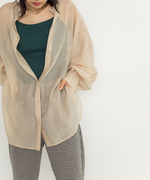 透明感のある羽織アイテム これ一枚で一気に透明感のあるルックに仕上げてくれるバンドカラーシャツの登場です。ボリュームをもたせた袖のシルエットはダブクロらしい柔らかい印象に仕上げました。ちょっとした羽織りにも役立つアイテムは一枚持っていれば困りません。ダブクロらしい、季節感のあるお色味で揃えました。 スタイリング 程よい透け感がありノースリーブなどにサラッと羽織るだけ気取りすぎないナチュラルテイストなスタイリングの完成です。程よい肌見せが出来るのでまだまだ暑い今の季節からでも着用可能。ロンTやリブニットなど上から羽織れば通年通して楽しんでいただけます。 ※商品の色はimageの着用写真ではなく、商品写真をご参照ください。 -------------------- 裏地:なし 透け感:あり 厚さ:薄め 伸縮性:なし -------------------- 【お買いものにおすすめの便利機能!】 ★商品のお気に入り登録 完売カラーの再入荷の時や、ラスト1点の時、セールになった時にお知らせします。 ★ブランドのお気に入り登録 商品や再入荷、セール情報など、いち早くブランドのお得な情報を受け取ることができます。 ぜひご活用ください!