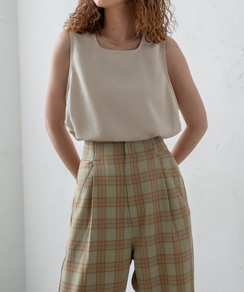 上品な印象を作り出すサテン生地のタンクトップが登場! 商品ポイント ・サテン生地がスタイリングを上品な印象に。 ・抜け感のあるデザインで、スタイリングのバランスを取ってくれます。 ・アウトスタイルでも決まるちょうどいい丈感です。 ・淡い色合いで、スタイリングに取り入れやすいのも嬉しいポイント。 スタイリングポイント ・晩夏は、ジーンズと合わせて一枚で着て頂いてもカジュアルになりすぎず、まとめることができます。 ・ジャケットやカーディガンの下に着て頂くと、抜け感のあるこなれた印象になります。 着用コメント 身長:153cm 骨格:ストレート 抜け感のある素材感なのでよりスッキリ見えしました。 細身のパンツと合わせて上品なスタイリングも可愛かったです。 身長:158cm 骨格:ウェーブ スクエア側を前にするとデコルテ部分がでて華奢見えします。 ハイウエストのパンツに合わせるとよりスタイルアップに! 身長:160cm 骨格:ナチュラル 肩回りがしっかり隠れるデザインなのでノースリーブでも肩幅が気にならなかったです。 ボリューム感のあるボトムとあわせて存在感のあるスタイリングも可愛かったです。 骨格タイプ ストレート:全体的に立体型で筋肉質。ひざ下はすらっと細め。ボディラインにメリハリがある。 ウェーブ:上半身が薄く、華奢。緩やかな曲線のボディライン。下半身に重心があり女性らしい体型。 ナチュラル:筋肉や脂肪があまり感じられない体型。腰の位置が高く骨や関節が目立ちやすい。 ※洗濯、取り扱い 洗濯:40度限度 手洗い アイロン:低温110℃まで スチームなし(あて布使用) タンブル乾燥:不可 ------------------------------------------------------ 裏地:なし 伸縮性:ふつう 光沢感:あり 生地の厚さ:ふつう ------------------------------------------------------ ------------------------------------------------------ 商品のお気に入り登録➡ お気に入りアイテムの値下げ・再入荷・在庫1点などの通知を受け取ることができます。 ブランドのお気に入り登録➡ 新商品や再入荷、セール、クーポン配布などお得な情報を受け取ることができます。 ※サイト上のカラー名と、お届け商品に記載されているカラー名が異なる場合がございます。 ※商品の色味は、撮影場所や光のあたり具合などにより色味が違って見える場合が御座います 。 また、お客様のお使いのPCのモニター環境などにより色味が違って見える場合が御座います。予めご了承の上ご注文下さい。 ※ご注文いただいた予約商品のお届け時期の確認は、注文履歴ページより行えます。 ------------------------------------------------------