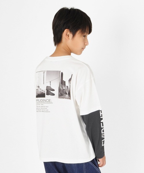 程よい厚みの天竺素材を使用した長袖Tシャツです。ゆったりとしていて着やすいシルエットに仕上げました。後ろに入ったモノトーンのフォトプリントがCOOLで大人っぽい印象に★袖がレイヤードになっているので1枚でトレンド感満載です◎【モデル】身長148cm、体重34kg、着用サイズ:150cm