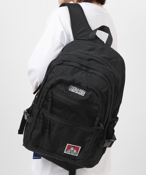 【BEN DAVIS/ベンデイビス】ブランドロゴ フロントメッシュ バッグパック/ 32L/ MESH XL PACK/ リュック/ エコバッグ ブランドヒストリー ■【BEN DAVIS/ベンデイビス】 1935年カリフォルニア州サンフランシスコ市でワークブランドの老舗として歴史あるブランドです。丈夫でタフなワークウェアとして人気度・知名度と高く、トレンドを意識しトータルコーディネイトを提案する日本でも幅広いシーンで高い評価を受けている。 ■おすすめPoint ポリエステル100%のため、軽く、耐久性が高いうえに縮みにくく、型崩れが起きにくい特徴のため長い期間使用可能。吸水性が低いため、速乾性があり多少の雨などは乾きやすい特徴もある。耐候性に優れており、長期間外気に触れていても劣化しにくいため、アウトドア ワンマイル時のお出掛けなどにも最適。 フロント部分のブランドネームがアクセントのカジュアルルックスモデル。メイン収納部分はダブルZIP仕様により大きく開き収納に便利。各ジップにはバッグと同素材の持ち手が設置してある事で、機能面だけでなくデザインアクセントとしても効果を発揮します。メイン収納部のPCスリーブはウレタン素材によりクッション性が高くPCやタブレットを保護。サブ収納も2つあり共に内側にメッシュポケットを含め、仕切りが多くあり仕分けに便利。フロントのジップポケットは3か所ありこちらも小物の仕分けなどに便利◎両側のサイドポケットは、500mlのペットボトルが収納可能であり、メッシュ素材により中身の落下も防止。背面部分が全面メッシュ素材のため通気性に優れ蒸れを軽減。背面には背負ったままスマホが収納可能なポケットや、キャリーバッグ通しも付いており、スーツケースの上に装着して落ち運びが可能と機能面も充実◎サイズ感は使い勝手がよい大容量の32Lとちょっとした旅行での使用も可能なサイズ感ですので、通学、通勤はもちろんキャンプなどのアウトドアなどのレジャーにも最適なサイズです。レジ袋有料対策のエコバッグとしてもご活用いただけます。 ■着合わせPoint シンプルなロゴ入りのバックパックは多くのスタイリングにもハマるアイテム。ブランドイメージに合わせたカバーオール、オーバーオール、ペインターパンツなどのワークMIXスタイルやダウンジャケット、マウンテンパーカー、ナイロンブルゾンなどにプラスして王道のアウトドアスタイルに。またモックネックをインナーにカーディガンやチェスターコート、ステンカラーコートなどのロングコート合わせのシンプルスタイルのハズシ小物として使っても◎もちろんブランドイメージのアスレジャー、スポーツスタイル、ストリートスタイルにもマストアイテムです。これからの季節、くすみカラー、ニュアンスカラーなどのTシャツや、スウェット、パーカー、ワークシャツ、ストライプ、チェックなどのシャツやカットとの相性も◎また、気分によりネックレス、リング、ピアス、ブレスなどのアクセサリーも含めてコーデを決めるのも◎秋冬シーズンは手袋、マフラー、ニット、ワッチキャップとの相性も◎ベーシックなデザインとシーズンレスなカラーリングはキャンプやフェスでの活躍はもちろん、男性はもちろん女性が身につけてもスタイリッシュ。友達とのペアコーデやカップルコーデに使ったり、大切な人へのプレゼントとしてもおススメのアイテムです。 ■お買い物をお楽しみ頂くために ◎購入ボタン横のハートマークをクリック! 完売カラーの再入荷通知、ラスト1点の通知、セールの通知も受け取ることができます(商品のお気に入り登録) ◎ショップのトップページにあるハートマーク【お気に入りショップに追加】をクリック! 新商品の入荷や再入荷等、いち早くブランドのお得な情報を受け取ることができます(ブランドのお気に入り登録) 【make a ray!/メイクアレイ!】 スタンダードなオリジナルアイテムとストリートから発信される旬なブランドをセレクション。時代の「今」を切り取り「旬」なトレンドをミックス。 日常のファッションに都会的な要素が溶け込むアイテムをプチプライスで提案するセレクトショップです。