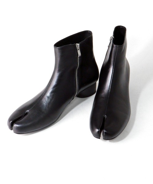 ハイセンスな足袋デザインと楕円形ヒールがアクセントのレザー足袋ブーツ! [素材・カラー] ●アッパーには牛革を使用。やわらかくて質感が良く、履きこむほど味が出る1足に。 ●合わせやすいカラー展開で、様々なスタイルに合わせられます。 [形・特徴] ●<トレンドの足袋デザイン>質感のよいスムースレザーでモード系との相性も良く,絶妙なブーツ丈で様々なスタイルに合わせられます。 ●サイドファスナー付きで着脱も簡単に行えます。 ●アウトソールは軽量で滑りにくく、屈曲性があるのでモードな見た目でありながらも歩きやすさも魅力。 ●クッション性のインソールと足袋デザインの設計で優しくFITし快適な履き心地に。 ●トレンドの4.5cm楕円形ヒールを使用。安定感のある形と特徴的なルックスがアッパーとも好相性! ●履き心地の良さ、歩きやすさはもちろん、ヒールのデザインやアッパー素材など、トレンドアイテムだからこそディティールを追求しました。 様々なシーンで活躍する足袋ブーツはコーディネートを問わずに履けるおすすめアイテムです!! 【商品のお気に入り登録】 商品のお気に入り登録をすると、 完売カラーやサイズの再入荷通知や、 ラスト1点のリマインド通知、 セール情報などをいち早くお届けします! 【ショップのお気に入り登録】 ショップをお気に入り登録すると 新商品の発売や再入荷、クーポン発行通知、 タイムセール情報など ショップのお得な情報をいち早くお届けします! ぜひ、ご登録ください!