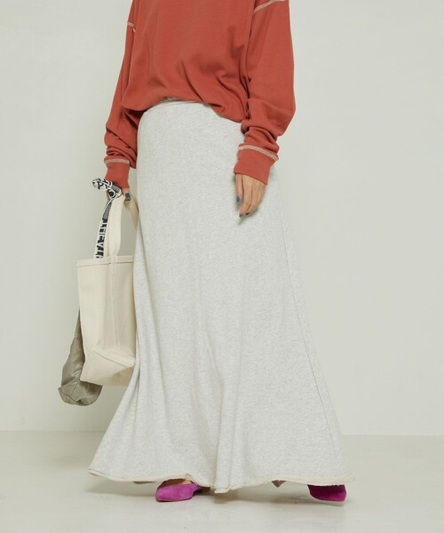 2021 Fall & Winter item ベーシックな裏毛生地のフィット&フレアのマキシ丈スカート ●ウエスト・ヒップ回りがスッキリとした綺麗なシルエットのロングスカート ●フェミニンなベージュ杢から鮮やかな色まで展開豊富 ●内側に紐がついていてウエストの調節も可能 ●ロングシーズン着用可能なスカートはマストバイアイテム おすすめコーディネート 裾がきりっぱなし仕様で、スウェットやGジャン等のアイテムと合わせたカジュアルな着こなしにピッタリ。 ブラウスやニットなど、女性らしいアイテムとのコーディネイトもバランス良く決まる。 カジュアル感あるスカートながら、シルエットがきれいなのでロング丈のトップスとの相性も◎。 靴やバッグなど、テイストを選ばずに合わせれるので1枚あると重宝するアイテムです。 -------------------------------------------------------- お気に入り登録のオススメ ▼商品のお気に入り登録▼ 再入荷、残り1点、セールなどの通知を受け取ることができます。 ▼ブランドのお気に入り登録▼ 新商品や再入荷、ショップのおすすめトピックスなど、いち早くブランドの情報を受け取ることができます。 -------------------------------------------------------- ※掲載画像の商品の色味は、屋外や屋内の光の照射や角度により実物と色味が異なる場合がございます。また表示のサイズ感と実物は若干異なる場合もございますので、予めご了承ください。 ※着用、お取り扱いの際は、商品についている品質表示とアテンションタグを必ずご確認下さい。 【FREAK'S STORE/フリークスストア】 私たちの心の故郷であるアメリカを中心に世界中から時々のテーマに基づく旬をセレクト。 常に新鮮で、どこか懐かしく、さりげなく、こだわりを持って、モノだけではなくコト、その楽しみ方をフリークススタイルとして提案します。