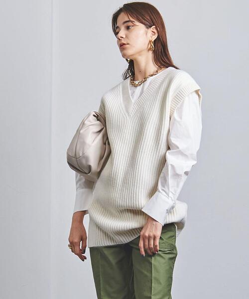 レイヤードを楽しめるロング丈のニットベスト。■デザインゆったりとしたサイズ、着丈の長さが特徴のVネックベスト。■素材柔らかなカシミヤブレンドの素材を使用。ふっくらとした編み目の片アゼ編地は空気を含むことで暖かさが増します。■コーディネート長めの着丈はワンピース風の着こなしや様々なレイヤードを楽しめます。ベルトでウエストマークをするなど女性らしいコーディネートも素敵です。============================裏地:なし透け感:なし生地の伸び:ややあり光沢感:なしケア方法:ドライクリーニング============================【注意事項】※商品を使用前に、タグ等に記載されている「取り扱い上の注意書き」、「洗濯表示」を必ずご確認ください。※商品画像は、光の当たり具合やパソコンなどの閲覧環境により、実際の色味と異なって見える場合がございます。予めご了承ください。※商品の色味の目安は、商品単体の画像をご参照ください。店舗へお問い合わせの際は、全国のUNITED ARROWS各店舗まで下記の品名/品番をお申し付け下さい。品名:RPSP/UGFM BIG RIB/VEST 品番:15181060624