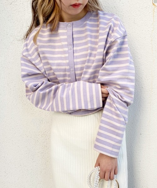 ~NICECLAUP 2021 winter Collection~ 【ナイスクラップ人気のボーダートップスNewバージョン!】 ■デザイン 前後着用可能のショート丈トップス。 身幅のゆったりとしたサイズ感とドロップショルダーの シルエットが今年らしさを演出してくれます。 ショート丈なので足長効果は抜群! ハイウエストのボトムスやスカートに合わせるのはな優秀アイテムです。 身体のラインを拾わないカバー力と、伸縮性がよく着心地の良さもポイント◎ 前を開けてカーディガンとして使っていただける3wayアイテムです! ■スタイリング ボーダーアイテムはデニム合わせがっ鉄板でオススメです! 丈間が短めなのでハイウエストのスカートやパンツ合わせだとバランスよく着こなせます。 ボタンを外して、インナーをチラ見せしても可愛く着こなせます。 インナーはキャミソール、寒くなってきたらロゴT、タートルネックニットなどを重ねると、 また印象が変わってオススメです。 甘めなコーディネートは、ロングスカートやミニボトム合わせも◎ カジュアルから、ガーリーなコーディネートを楽しめます。 ------------- 裏地:なし 伸縮性:あり 生地の厚さ:普通 生地の重さ:普通 ------------- ※サンプルでの撮影のため、実際のものと仕様や色が異なる場合があります。 ※室内、室外での撮影のため実際より明るく映っていたり、暗く映っていたりする場合がございます。 ※品質表示を必ずご確認下さい。 【商品のお気に入り登録】 完売カラーの再入荷や、ラスト1点のお知らせ、セールの通知を受け取ることができます。 【ブランドのお気に入り登録】 新作入荷や再入荷情報など、ブランドの情報をいち早くお届けします。 ぜひご登録ください♪