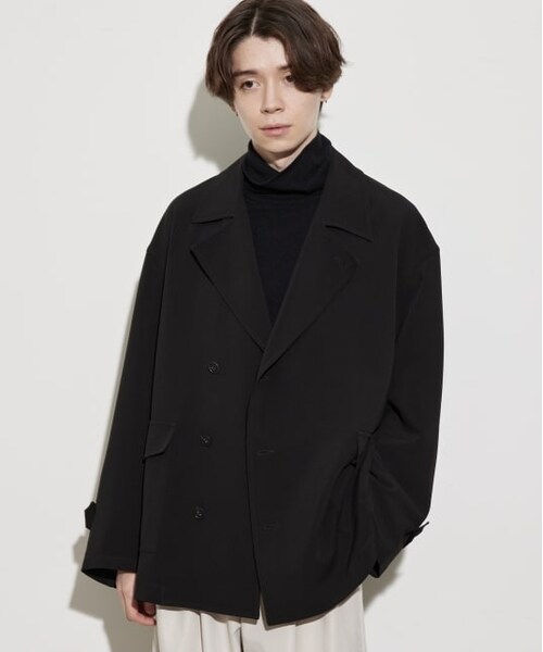 【素材】程よいボリュームとドレープが特徴のポリエステルを使用したシーズンレスな素材です。【デザイン・シルエット】人気のトレンチコートをブルゾンデザインにアレンジしたトレンド感のあるビッグブルゾン。綺麗見えする素材にミニマルなデザインでクリーンな印象かつボリュームのあるシルエットで抜け感を表現しています。【カラー】スタイリングに合わせやすい定番のブラックに加えて、絶妙なカラーのLグレーは鮮度あるカラーになっています。【スタイリング】スキニーでメリハリのあるスタイリ