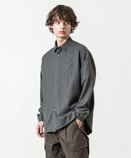 配色のステッチワークが印象的なドロップショルダーのオーバーサイズシャツ。高密度で適度なハリ感と落ち感を両立させたポリエステルレーヨンのツイルを採用。しなやかで、柔らかい肌触りが上品で落ち着いた雰囲気を演出。素材感を生かすように削ぎ落とされたミニマルなデザインで、ドロップショルダーと配色ステッチがアクセントとなった一着。脇の縫い目の折伏せ縫いや、運針の細かなステッチを採用するなど縫製にもこだわった仕上がりに。【 SLICK 】(スリック)SLICKの製品は素材選びから始まる。 クオリティ、表情、袖を通した時の印象、その全てが調和する事を大切にしています。 そして独自のフィルターを通じてテキスタイルとデザインを最適に掛け合わせることで、 製品が持つ表情と、着た時のちょうど良さが生まれる「価値のある服」を提案。