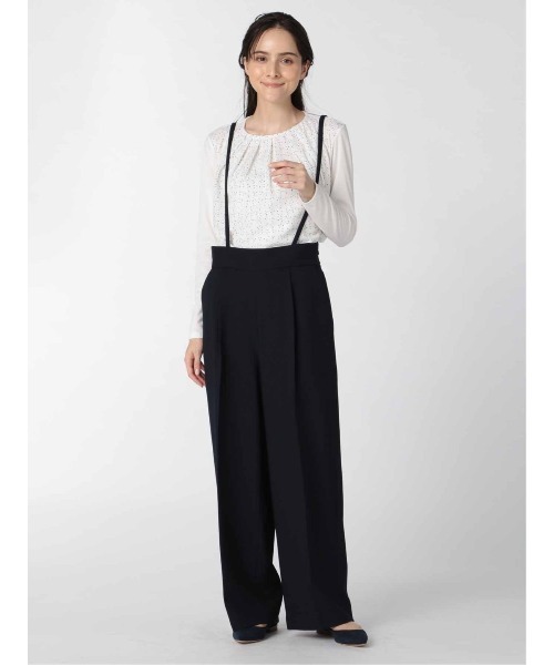 ■素材特徴 表地は、ウールのような風合いがあり柔らかくて肌触りの良いポリエステルを使用しています。裏地は抗菌・抗ウイルス等の加工をほどこしたポリエステルです。 ■機能 【ストレッチ】伸縮性があり快適な着心地。裏地も伸びてストレスフリー。 【ウォッシャブル】ご家庭で洗濯可能。いつも清潔に着ていただけます。 【イージーケア】洗濯後もシワが入りにくく、お手入れも簡単です。 ■デザイン 1本は持っておきたいサスペンダー付きのワイドパンツです。センタープレスを入れることで、綺麗目な印象に仕上げています。ウエストを微調整できるバックストラップが付いています。 ■シルエット 身体のラインを拾わない、ベーシックなシルエットで、幅広い年代の方に着用していただけます。直線のラインが美しく、足長効果もあります。 ■コーディネート デザインに特徴があるので、シンプルなトップスがおすすめです。トップスインしてウエストにポイントを持ってくるとスタイルアップ効果も◎ デイリーからオフィスカジュアルまで、オンオフ兼用で大活躍します。 フィット感:標準 シーズン:秋冬 展開カラー:紺(ネイビー) ■セットアップアイテムは下記品番をご参照ください。 ・ウーリッシュ セットアップ カラーレスジャケット 紺:120103063107123 ・ウーリッシュ セットアップ フレアースカート 紺:120063063107123 *末永く御愛用頂くために、アテンションタグ・洗濯ネームを必ずご確認の上、御着用又はお取り扱い下さい。 *光の当たる場所や高温多湿になる場所での保管は避けて下さい。 *使用の有無に関わらず、経年劣化は進行いたしますのでご了承下さい。 *生地の裁断・縫製方法により、写真と同様の柄が出ない場合がございます。 *お使いのパソコンなど閲覧デバイス・環境により質感・色味に誤差が生じる場合がございます。 予めご了承くださいませ。 *裾上げ等のお直しが必要な場合は、ZOZOTOWN納品書をご持参していただき最寄のタカキューグループ店舗までお持ちください。 お直し代金・お直しにかかる期間は店舗によって異なる場合がございますので、詳しくは店舗スタッフまでお問い合わせください。 * ZOZOTOWN お買い物ガイド ・商品のお気に入り登録 ♡をクリックしましょう!完売カラーの再入荷通知や、ラスト1点の通知、セールの通知をお知らせします。 ・ブランドのお気に入り登録 新商品や再入荷など、いち早くお得な情報を受け取ることができます。 ・最短で翌日お届け 商品をカートに入れた後、注文内容の確認ページで「即日配送」を選択していただければ、最短でご注文した翌日にお届け致します。 (ZOZOTOWNお買いものガイドをご参照ください) 【シーン】デート・婚活・女子会・同窓会・結納・結婚式・披露宴・二次会・2次会・会食・食事会・お呼ばれ・お祝い・パーティーシーンはもちろんOL・通勤・オフィス・ビジネス・キャリアシーンや、お受験・面接 ・参観日・入学式・入園式・卒業式・卒園式・謝恩会・演奏会・ピアノ発表会・ステージ衣装・セレモニーシーンなど、様々なオケージョンに対応。 【注目キーワード】ママ・母・母親・ママスーツ・母の日・誕生日のプレゼント、ギフトとしてもおすすめ。普段使い テレワーク レディス レディースファッション コーデ ファッション コーディネート クラシック クラシカル シック 清楚 上品 エレガント きれいめ キレイめ な雰囲気で オンスタイル オフィスカジュアル キャリア コーディネートまで活躍。