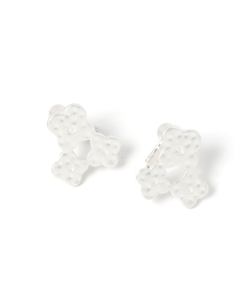 ーーーツチメ加工が施された表面感のあるメタル素材のイヤリング。3のお花が連なりリースのようになったデザイン。優しい印象のピアスに仕上がっていて、身に着けるだけでさりげなく華やぐアイテムです。ーーー