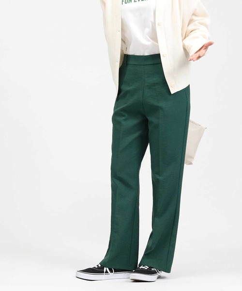 シーズンレスに着用できる人気のフレアカラーイージーパンツ。サラッとした肌触りで軽く着心地抜群なアイテムです。センタープレスにフレアデザインで脚長効果も期待できます。シンプルながらもトップスを選ばなのでカジュアルにもキレイめにも着こなすことができ、コーディネートの幅も広がります。今年はグリーン・オレンジなど発色の良いカラーが人気です。