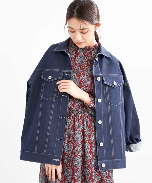 ゆったりサイズがこなれ感たっぷりなGジャン 【季節の変わり目に嬉しいブルゾン】 【抜き襟のデザインがカジュアル感◎】 ■デザイン オーバーなサイジングでさらっと一枚羽織るだけでトレンドライクな着こなしが完成するGジャン。少し抜き襟のデザインはこなれ感のあるスタイリングに。オーバーサイズだからこそインナーも選ばずレイヤードしやすいのも魅力的。長いシーズンで活躍してくれるアウターです。 ■素材 デニム風な素材はブランドオリジナル。一見デニムのように見えますが、実際はデニム風の素材のため、本物のデニムよりも色落ちのしにくさが特徴です。ストレッチも効いているので着心地の良さも魅力的。洗濯機洗い可。 伸縮性:あり ※自然光・照明の関係、パソコン・スマートフォンなどの環境により、実際と色味が違って見える場合がございます。予めご了承ください。商品の色味は、詳細画像をご参照ください。 ※サンプルでの撮影となるため、実際にお届けする商品と仕様やサイズが異なる場合がございます。 ▼カラー番号表記 ネイビー(57)、グレー(93)