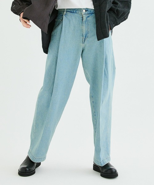ヒップポケットをの位置を低めに設定することで腰穿きしているかのようなルックスになるデザインが特徴的なデニムスラックス。太めのワタリ幅からの美しいテーパード、タック入りのウエスト、コンパクトな腰回りから生まれるブランド独自のシルエットです。ウエストはゴム仕様にし、穿き心地も考慮されています。