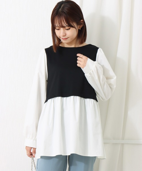 着映え効果抜群なチュニックブラウス♪トレンド感があり一枚でもオシャレな雰囲気が手に入るブラウスです。切替の位置が高いので、華奢見え+足長効果が期待できます。■point・シャツとポンチのドッキング・背中部分の釦使い・ボリューム袖■detail布帛とポンチの切替位置が高いので華奢見え+足長効果が期待できます。袖や裾にギャザーがたっぷり使われているので女性らしい雰囲気に◎ヒップが隠れる着丈も嬉しいポイント。一気に季節感のあるトレンドコーデになるので秋服の一着目におすすめです♪■fabricハリ感のあるしっかりとした布帛素材なので体のラインを拾いすぎずスッキリ見えします。春や秋など季節の変わり目に着やすい生地感です。……………………透け感:なし厚さ:普通裏 地:なし光沢感:なし伸縮性:なしポケット:なし洗濯方法:手洗い……………………※詳しいお手入れ方法は商品タグをご参照ください。■coordinate・たっぷりギャザーを活かして、パンツとのコーディネートがおすすめです。・一枚でレイヤードスタイルが完成するので簡単にトレンド感のあるコーディネートに◎。《商品のお気に入り登録》・再入荷通知や、ラスト1点の通知、セール通知も受け取ることができます。《ブランドのお気に入り登録》・新商品や再入荷など、お得な情報を受け取ることができます。※屋外の光や照明の当たり具合、パソコンなどの閲覧環境によって実際の色味と異なって見える場合がございます。予めご了承ください。※他のキャンペーンにより、期間中に価格が変動する場合があります。