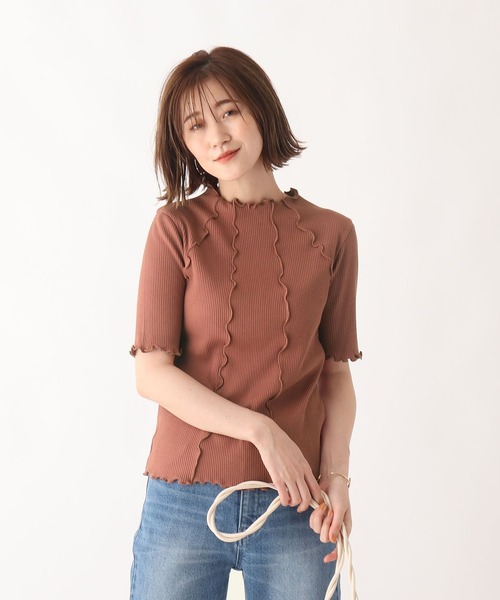 メローデザインがポイントのストレッチ性のあるリブトップス。【素材】RENU(R)という環境に配慮した再生ポリエステルを使用し、伸縮性をプラスしたリブプルオーバー。肌触りのよい心地よいタッチの汎用性の高い素材です。※ライトグレー(011)はやや透け感があるため、インナーの着用をおすすめします。【デザイン】波を打つような配色メローを全体にあしらっています。ネックはボトルネックを採用し、トレンドの首つまりデザインです。※『RENU』廃棄される衣料品や工場での残布を原料としたポリエステルを生成することで未来の地球環境を守る取り組みです。この製品はRENU糸を使用したサスティナブル商品です。こちらの商品は主に秋に着用いただける商品です。モデル情報:身長166cm B80 W59 H86 着用サイズ:38(M)店舗へのお問い合わせ商品番号:C12-13206●製品寸法:36(S):着丈56cm B72cm 袖丈24cm 肩幅34cm38(M):着丈59cm B75cm 袖丈26cm 肩幅35cm40(L):着丈61cm B78cm 袖丈27cm 肩幅35cm備考: