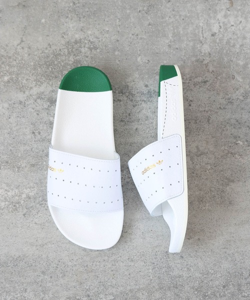 【adidas originals】ADILETTE SLIDES(H00571)テニス4大大会で2度優勝したテニス界のレジェンドの名前を有する「STAN SMITH」。スリーストライプ、グリーンの差し色といった、スタンスミスの特徴を詰め込んだアディレッタサンダル。クラシックなシャワーサンダルでリラックス感のある一足です。