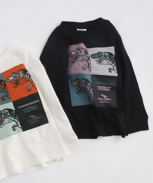 BREEZE(ブリーズ)の長袖Tシャツ「カラフルボックスダイナソーTシャツ」は、手頃な価格とアメカジテイストを取り入れた大人顔負けのデザインが人気!1枚で着ても重ね着してもGOOD!