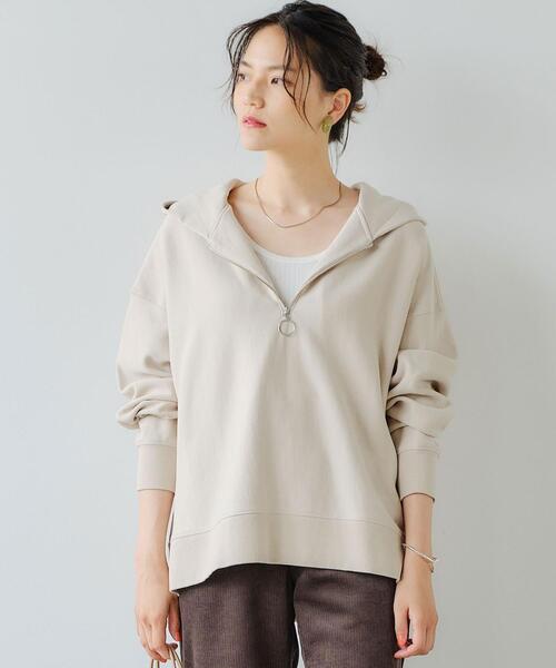 ヘルシーな女っぽさが感じられる!新作フードカットソーが登場。 ■デザイン フロントのハーフジップがポイントの一着。 カジュアルになり過ぎない女性らしいニュアンス感が魅力です。 身体から泳ぐシルエットが抜け感のある着こなしを演出♪ 前後差のある丈×サイドスリットがこなれた印象になります。 ■素材 コットン素材なので肌触りも快適◎ 柔らかな着心地はデイリーに重宝します。 ■コーディネート ジップの開け方次第で印象の変化をお楽しみ頂ける一押しトップス。 タンクトップと合わせた程良い肌見せで、今っぽい着こなしが完成します。 ・3612-199-2092 同素材でクルーネックも展開ございます。 ============================ 生地の伸び:ややあり 光沢感:なし 透け感:なし ケア方法:手洗い可・ドライクリーニング ============================ ▼お気に入り登録のおすすめ▼ 気になる商品は「お気に入り」登録がおすすめ! お気に入り登録商品は、マイページにて現在の価格情報や在庫状況の確認が可能です。 お買い物リストの管理に♪是非ご利用下さい。 【注意事項】 ※商品を使用前に、タグ等に記載されている「取り扱い上の注意書き」、「洗濯表示」を必ずご確認ください。 ※商品画像は、光の当たり具合やパソコンなどの閲覧環境により、実際の色味と異なって見える場合がございます。予めご了承ください。 ※商品の色味の目安は、商品単体の画像をご参照ください。 ※画像の商品はサンプルです。実際の商品と色味、仕様、加工、サイズ、素材等が若干異なる場合がございます。 店舗へお問い合わせの際は、全国のgreen label relaxing各店舗まで下記の品名/品番をお申し付け下さい。 品名:SC ハーフジップ フードPO 品番:3612-199-2093