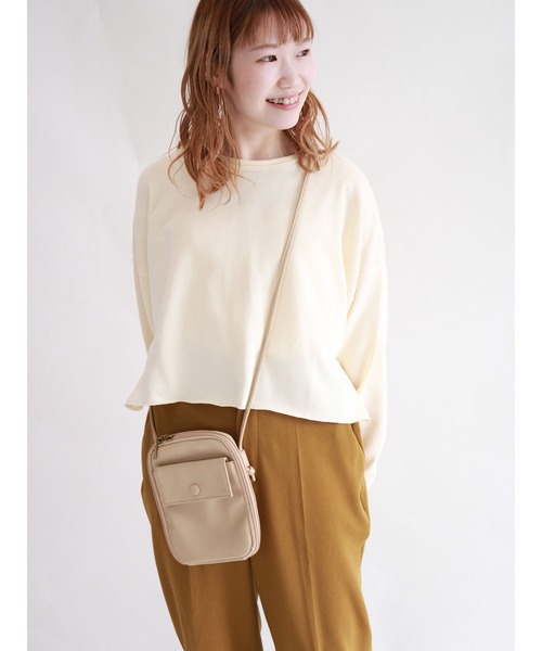 フロントにフラップポケットが付いたモバイルショルダーバッグ。 メインはマチありで大きく広がるので、中身が見えやすく、取り出しやすいのも嬉しいポイントです。 シンプルなデザインでコーディネートにもとりれやすく、デイリーにはもちろん、旅行などにも重宝しそうなアイテム。