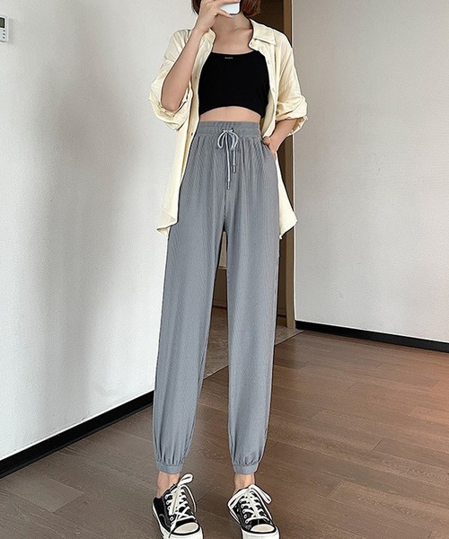 リラックスモード漂うリブジョガーパンツ登場!■デザインベーシックとトレンドをMIXしたカジュアルスタイルを実現するリブ素材を使用した一枚。動きやすく、おうち時間にもピッタリなデザインに仕上げました。■素材リブが効いた柔らかい素材です。伸縮性抜群なので、着心地も◎■コーディネート足首がすっきりと見える裾リブ仕上げなのでヒールにもスニーカーにも相性◎。抜け感のあるブラウスやプルオーバーに合わせると今年らしいこなれ感のあるスタイリングが楽しめます。【モデル着用サイズ】全色モデル身長:162cm、着用サイズ:M