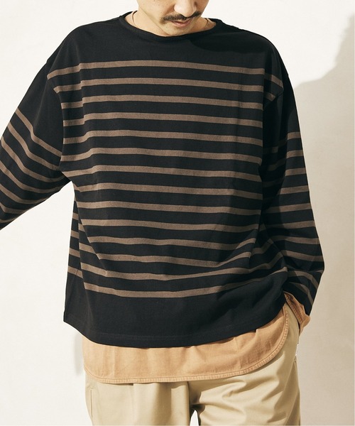 大好評のビッグサイズシリーズにボーダーロンTが登場。シーズンムード漂うカラーリングに注目。今期トレンドにもなっている”ボーダーTシャツ”の秋冬モデルです。大きめサイズが主流の今、relumeではサイズ感に特徴を持たせ今っぽいデザインとシルエットにしています。2サイズ展開で特に3XLサイズは身幅を広く取られており、短丈・幅広の正方形に近いボックスシルエットに仕上げました。そうすることで幅広いスタイリングに対応することができ、レイヤードスタイルなども楽しむことができます。生地感は空気の力で撚り合わせる空紡糸で編みたてた生地を使用しています。表面の撚りが強い為、表はしっかり、中心にいくほど撚りは甘く柔らかいのが特徴で、relumeが開発したオリジナルの生地です。ディティール・デザイン含めリラックスサイズなのでメンズ・レディース関係なくユニセックスでの着用も可能なボーダーアイテムです。**********************裏地:なし伸縮性:ややあり光沢感:なし生地の厚さ:普通**********************【スタッフ着用コメント】《スタッフH》身長:173cm/体重:62kg/体型:中肉中背/普段サイズ:M/着用サイズ:Lサイズ感: 身幅が広く、丈が短めなのでオーバーサイズだが、だらしなく見えないサイズ感が良い◎素材感:生地感はさらっとしていて、柔らかい素材感です。着心地:袖や裾などにリブが無いのでゆったりとリラックスして着ることができます。**********************※店頭・外での撮影画像は、光の当たり具合で色味が違って見える場合があります。商品の色味は、スタジオ撮影の画像をご参照ください。洗濯:洗濯機使用可