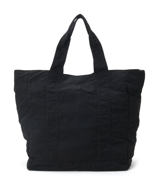 ■洗濯機で洗える、毎日使いたくなる便利なビッグトートバッグが登場!■【デザイン】便利なサイズ感にシンプルなディテールの大きなトートバッグをベースに同色のロゴ刺繍がさりげないデザイン。選べるカラーリング、素材感で幅広いスタイリングにマッチする、ユニセックスで使えるアイテムです。【スペック】洗える生地、ボタン付属などを使用しており、洗濯機で丸洗いが可能なので日常的にガンガン使える嬉しいバッグ。ちょっとしたアウターからスマートフォンや本、お財布やペットボトルなど、大体のものをガバッと入れることのできる楽ちんなサイズ感が魅力。小分けできる内部ポケット仕様でワンマイルからちょっとしたお出かけはもちろん、スーパーのお買い物など日常生活に一役買ってくれる使い勝手のよい仕上がりです。【素材感】色展開別にコットンキャンバス、ナイロン素材を使用。洗いざらした表情は使い込むほどに愛着の湧く仕上りです。【使用感】シンプルなディテール・デザインに使い勝手の良いカラーリングで様々なコーディネートに対応可能。ワンマイルのお出かけから旅行やレジャーの軽い街歩きなど、あらゆるシーンで大活躍すること間違いなしです男女問わずユニセックスでお使い頂けますので、ご自身用はもちろん、誕生日プレゼントなどギフトとしてもオススメ!※ポケット数:外側×1 内側×5店舗へのお問い合わせ商品番号:262-03605●製品寸法:99(FREE):高さ42cm 幅(上部)56cm 幅(下部)41cm マチ22cm 持ち手上がり22cm ショルダー全長72.5cm備考:重量:約695g(サンプル重量)