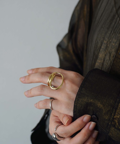 『 ニュアンス ライン メタル リング 』一筆描きのような、ゆったりとしたラインが目を惹くニュアンスリング。動きのあるデザインなので抜け感もありつつ、これ一つで手元に存在感を与えてくれます♡これ一つでも手元のスタイリングが完成しますが、お手持ちのリングとの重ね付けでまた違った雰囲気になりますよ◎カジュアルなTシャツ×スラックス、モノトーンコーデ、マニッシュなセットアップに合わせればピリッとアクセントに。上下どちらでも着用できる2wayアイテムなので、その日の気分やコーディネートに合わせて着け方を楽しんでいただけます。※撮影・モニター環境等により実際の商品の色味と異なって見える場合がございます。〈商品のお気に入り登録〉お気に入りの登録をして頂きますとセールの通知・ラスト1点になった時の通知や、再入荷通知を受けることができます♡〈ブランドのお気に入り登録〉新商品の発売や再入荷、タイムセールやクーポン発行のお知らせなどお得な情報を受け取ることができます。