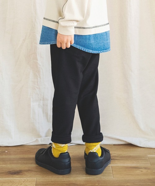 「楽にはける、やわらかい」カットソー素材のためやわらかく優しい肌ざわり。ストレッチ性もあり、よく伸びるためはき心地、動きやすさは抜群です! 「合わせやすい」 シンプルで飽きのこないテーパードデザイン。カットパンツのやわらかさと布帛ライクな見た目を併せ持つ素材で、特にデニムニットは加工にこだわり通常のデニムと変わらない雰囲気です。 「豊富なバリエーション」 無地、デニムニット、チェックと豊富なカラーバリエーションで通園・通学から週末まで1週間毎日使える万能パンツ! ----- 伸縮性:あり ポケット:あり ウエストゴム調整:可