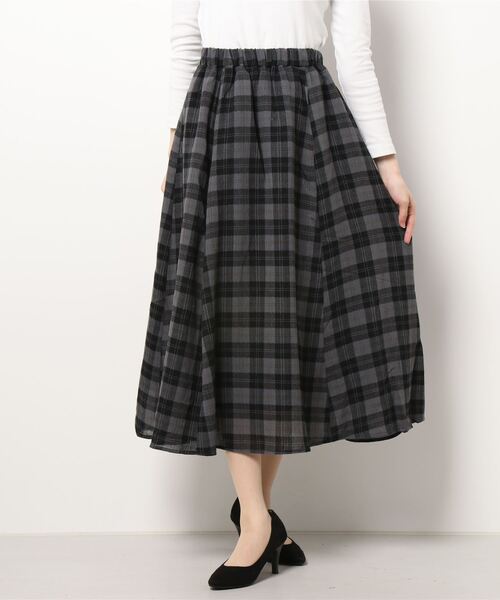 ふわっと揺れる柔らかなフレアシルエットが、フェミニンムードを漂わせるスカート。ウエストゴム仕様で安心感もあり、着心地が良いのも嬉しいポイント◎シックなカラーでコーディネートにも取り入れやすく、カジュアルにも綺麗めにもスタイリングが楽しめるアイテムです。