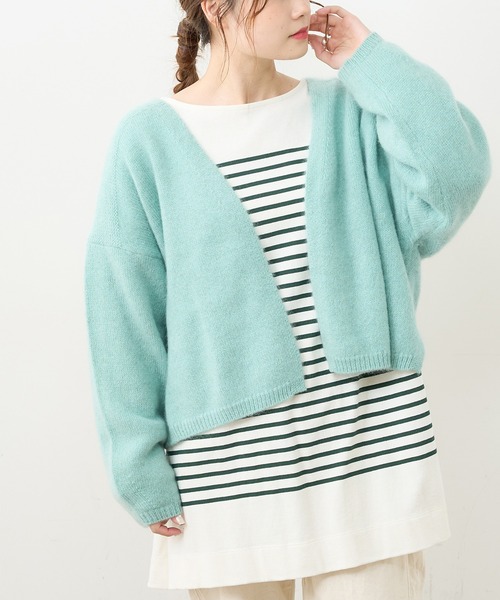 ピュアルセシン 2021 autumn&winter collection【sophisticated retro】 ◇ホワイトヤク100%・やわらかいキレイなカラーが気分を上げてくれる上質なカーディガン◇ ●デザイン 素材にこだわったPUAL CE CIN premiumなカーディガンが登場です。 チベットの大部分やモンゴル、中国辺境の山岳地帯、高原に生息しているヤク。 大変柔らかく、弾性に優れているためシワになりにくく、更に防寒力も備えているのが特徴。 PUAL CE CINではそんなヤクを贅沢に使用。 柔らかいカラートーンで染め上げ、羽織るだけで気分があがるような一品に仕上げました。 ゆったりとしたロングスリーブに、腰が隠れるほどの着丈でメリハリのついたシルエット。 アームホールを広めにとってるので、やや厚手のトップスの上からも羽織れます。 ●カラー展開 アイボリー/ベージュ ・・・ベーシックな2色 ミント/ライトピンク/ピンク ・・・差し色にもぴったりな3色 計 5色展開です。 ●素材 ホワイトヤク100%。 保温性に優れ、チクチク感を感じない素材です。 ●スタイリング 腰が隠れるほどの着丈で、ゆったりとしたシルエットなので ワンピースと合わせたフェミニンなスタイリングや シンプルなトップス+パンツ・スカートにこちらを羽織るだけでも 洗練された大人カジュアルなスタイリングが完成されます。 素材感、カラーが存在感のある主役級アイテムなので ONするだけで、上質なスタイリングが完成します。 =============================== 透け感:アイボリーのみ濃色なインナーを合わせるとやや透けます。 裏地:なし 伸縮性:なし 光沢感:なし 生地の厚さ:厚手 【スタッフコメント】 年齢:30代前半/身長:155cm/普段着用サイズ:Mサイズ サイズ感: 見た目よりも軽く感じました。ゆったりとした羽織心地で窮屈感はありません。 ゆったりとしていますが、ノーカラーでフロントはすっきりとした印象です。 素材感: 柔らかくソフトな肌触り。とても暖かいです。 =============================== ※撮影場所やお使いのモニター環境により若干お色味が異なる場合がございます。特にロケの撮影では明るく見える傾向にございます。 ※予約商品はサンプルで撮影をしております。若干の仕様が変更になる場合がございますので予めご了承の上ご注文くださいますようお願いいたします 。