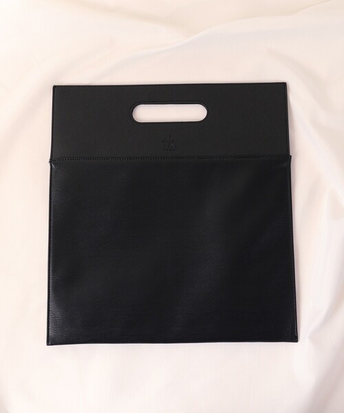 【デザイン】上部と収納部分を硬さの異なるフェイクレザーで切り替えたクラッチバッグ。カチッとしたフォルムにロゴを型押ししただけのシンプルなルックスで、スタイリングを大人っぽく引き締めます。フラップを起こせば手持ちもできる2WAY仕様になります。※ポケット数:内側×4【A4ファイル収納可】店舗へのお問い合わせ商品番号:P97-01311●製品寸法:00:高さ32.5cm 幅(上部)36cm 幅(下部)36cm マチ0.5cm 持ち手上がり3cm備考:重量:約490g